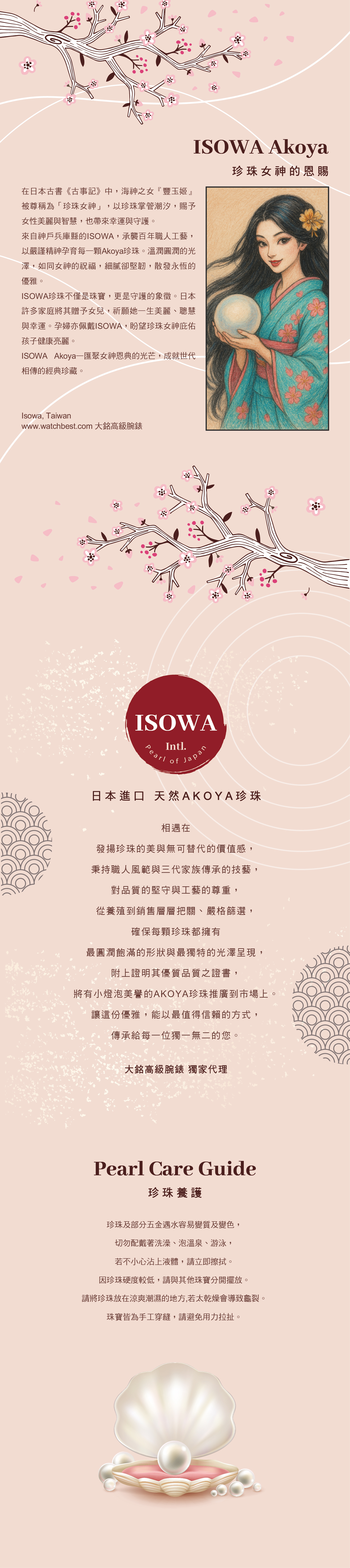 ISOWA 7.5-8mm 稀有精選天然珍珠 海水珠 白帶粉色調 附日本真珠鑑定書