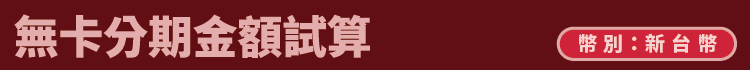 分期手續費:6期4.25% / 9期6% / 12期7.5% / 18期11% / 24期14% ,試算結果僅供參考,確切金額請洽服務人員。