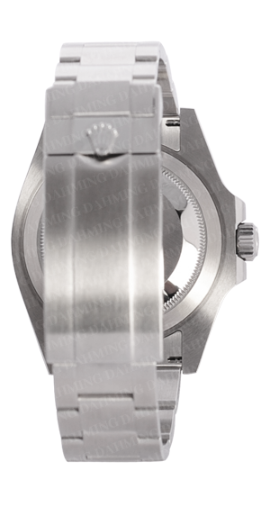 精鋼材質,單向旋轉60分鐘刻度外圈,配防刮損Cerachrom陶質字圈,藍寶石水晶鏡面,旋入式龍頭,藍色夜光,日期窗顯示。