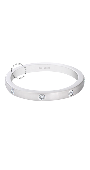 對新人致上永恆的祝福。 八顆明亮形切割鑽石鑲飾在由K金打造的婚戒,為佩戴者的玉手增添姿彩。