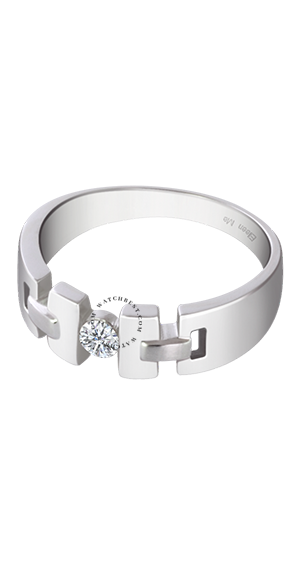 款式獨特而雅致。一顆重0.16克拉的圓形鑽石鑲嵌在絢爛奪目的白K金之上,突顯出男士的簡潔與優雅。