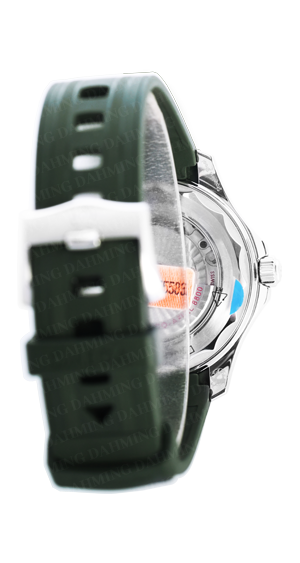 精鋼,鍍銠鏤空指針及立體時標均覆以白色Super-LumiNova超螢光塗層,排氦氣閥門則呈圓錐形設計。