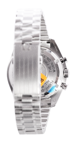 精鋼材質。歐米茄超霸專業「登月錶」配備黑色錶盤,覆蓋抗碳纖維玻璃膠面鏡。不鏽鋼錶殼配備設有測速刻度的黑色錶圈。附獨特的登月錶錶盒。