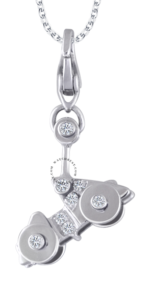 18K白金鑲圓形明亮式切割鑽石小推車造型鑽墜,童趣可愛。