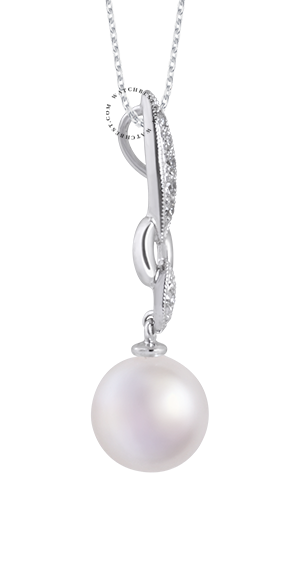 莎拉 18K白金鑲鑽珍珠吊墜