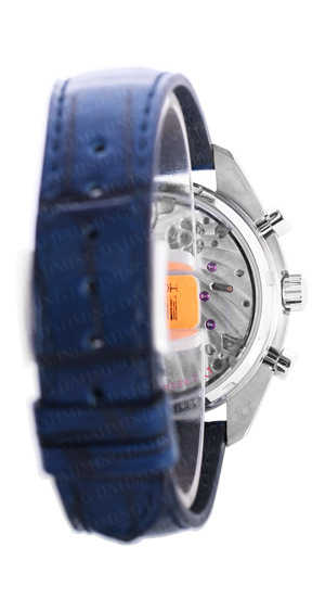 精鋼材質。藍寶石水晶玻璃。透背款。融合1940歐米茄腕錶特色,藍色測速鋁圈。錶盤以1940年代的「蝸紋設計」印有三個獨特的計時刻度,包含測速刻度、脈搏計刻度及測距刻度。