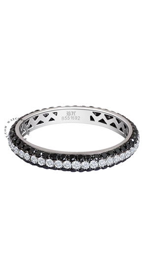 利用黑鑽將白鑽鑲嵌在其中,充分展現出白鑽的光芒以及黑鑽的內斂,線戒款的設計,適合搭配任何服飾配戴。