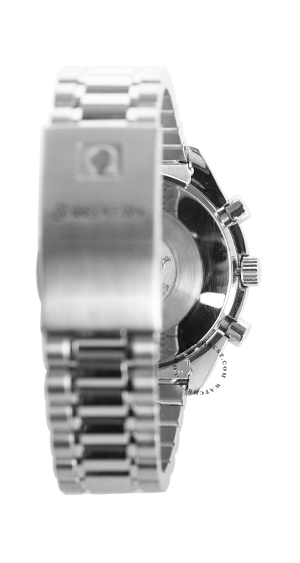 精鋼材質。歐米茄超霸專業「登月錶」配備黑色錶盤,覆蓋抗碳纖維玻璃膠面鏡。計時功能,小秒針計速及測速器。