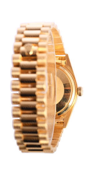 18K金材質,膠玻璃。經典Day-Date系列,星期日期顯示。