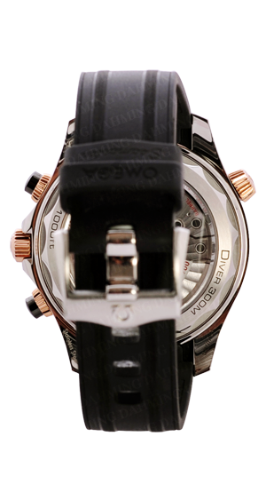 Seamaster 半玫瑰金計時黑海馬 膠帶