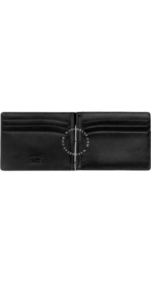 附鈔票夾6卡式皮夾,黑色歐洲全粒面牛皮具有萬寶龍深邃亮澤,提花襯裡飾有萬寶龍品牌字樣,萬寶龍標誌飾以鍍鈀圓環,設有6個信用卡隔層及鈔票夾。