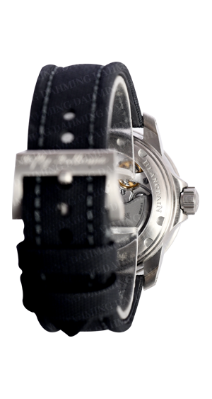 鈦金屬錶殼,日期及秒針顯示。單向旋轉藍寶石錶圈。五十噚系列腕錶,設計上特別強調與法國海軍蛙人突擊隊的淵源。