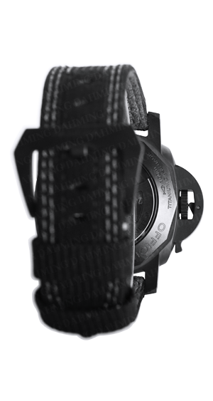 黑色陶瓷,P.2003自動上鏈機械機芯,完全由沛納海研製六點鐘方向設置線性動力儲存顯示。兩地時間功能。透明藍寶石水晶玻璃錶背,三明治面盤。