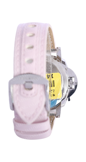 精鋼材質。全新LUMINOR DUE系列,超薄機芯,白色錶面,PRADA聯名尼龍錶帶。