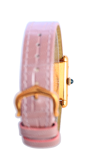 銀包金材質,手動上鍊機芯,經典面盤。面盤底部設計了卡地亞的標誌,龍頭地方鑲上大顆藍寶石,典雅的設計風格,延續了卡地亞的設計精神,非常適合年輕男女佩帶的經典坦克系列錶款,簡單大方,活潑時尚。